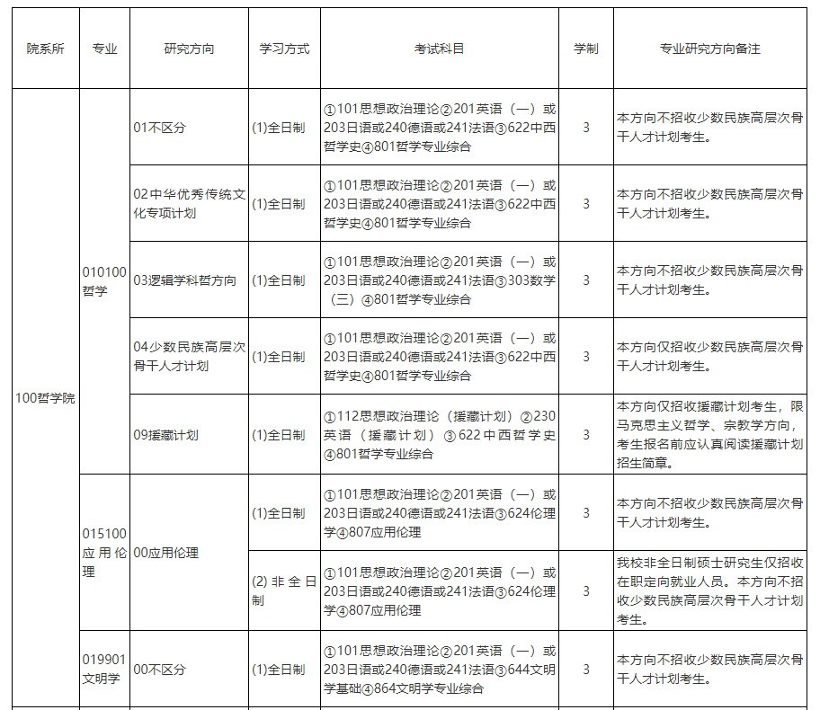 2025年中国人民大学哲学院硕士研究生招生专业目录