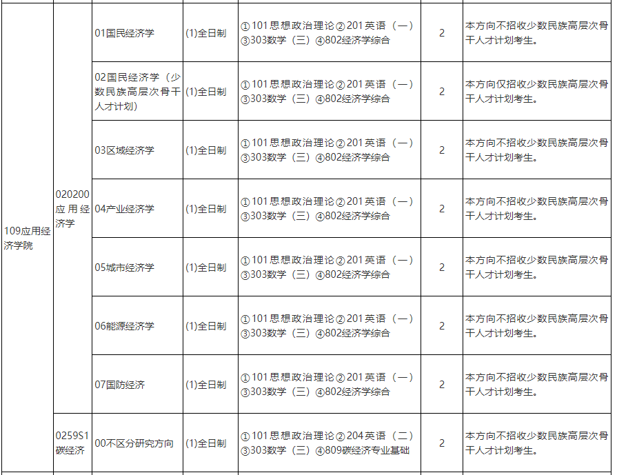 2025年中国人民大学经济学院硕士研究生招生专业目录