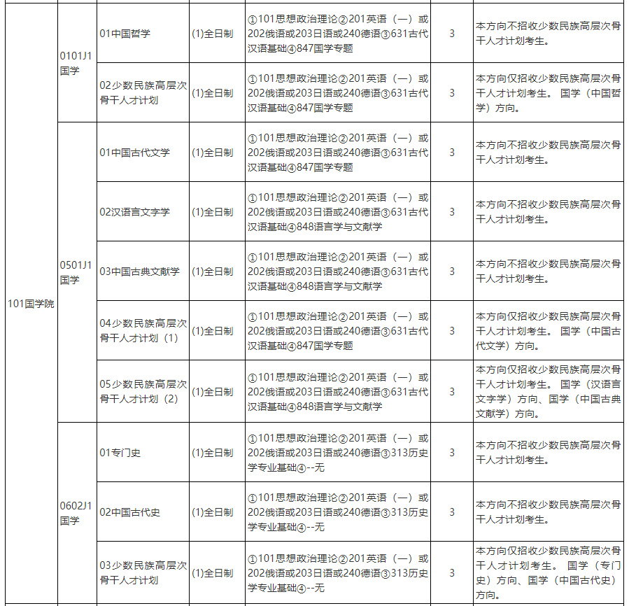 2025年中国人民大学国学院硕士研究生招生专业目录