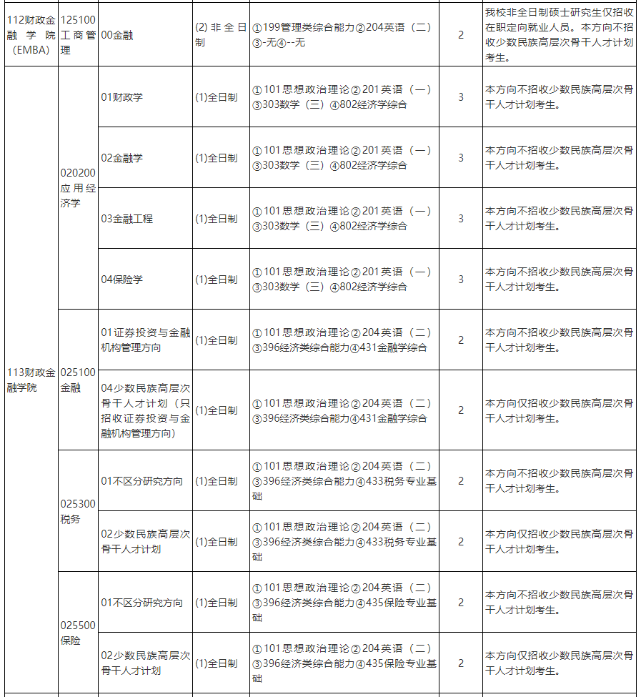 2025年中国人民大学财政金融学院硕士研究生招生专业目录