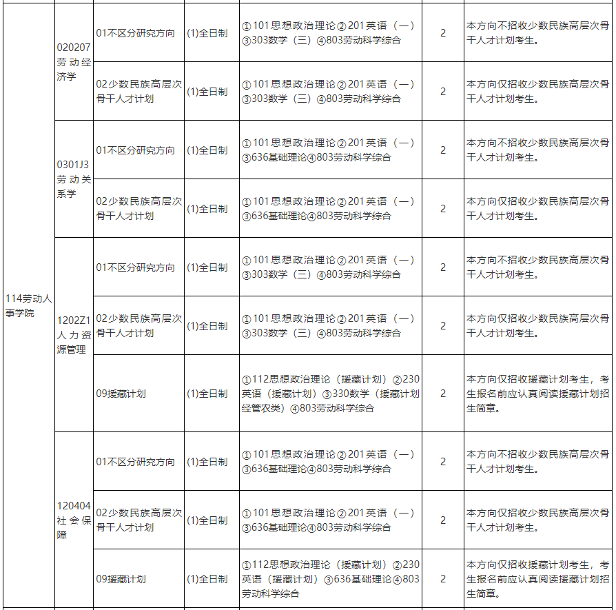 2025年中国人民大学劳动人事学院硕士研究生招生专业目录