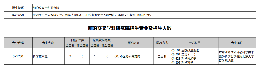 2025年北京大学前沿交叉学科研究院硕士研究生招生专业目录