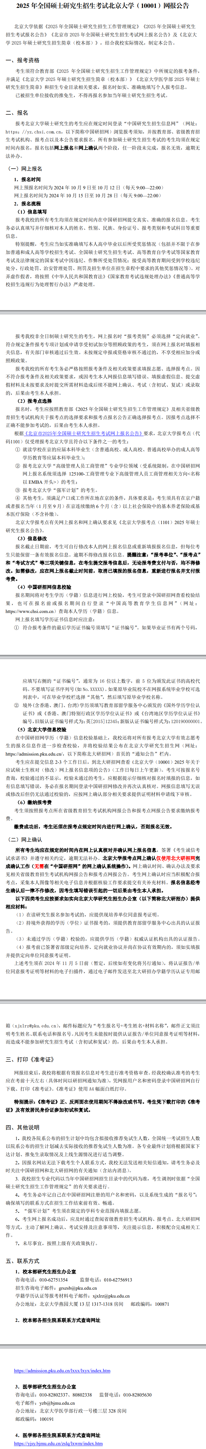 2025年全国硕士研究生招生考试北京大学(10001)网报公