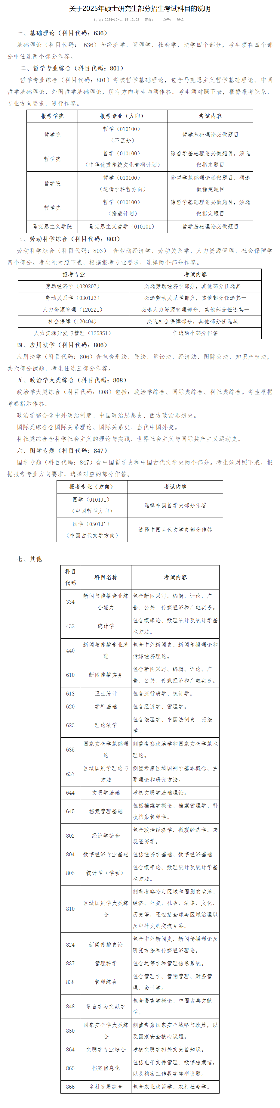 2025年中国人民大学硕士研究生招生部分专业课考试科目说明