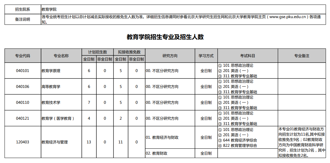 2025年北京大学教育学院硕士研究生招生专业目录