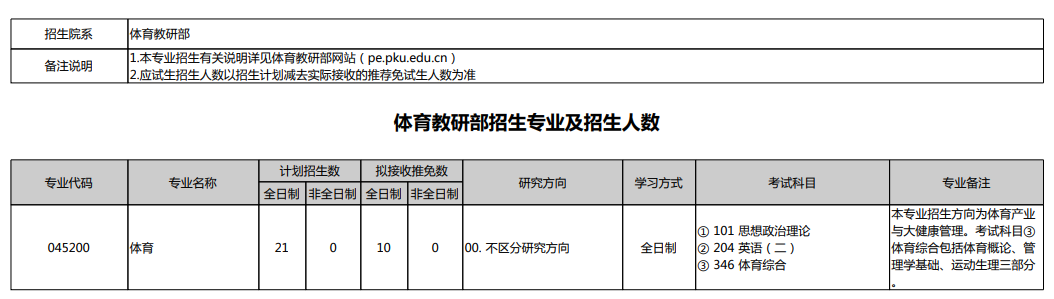 2025年北京大学体育教研部硕士研究生招生专业目录