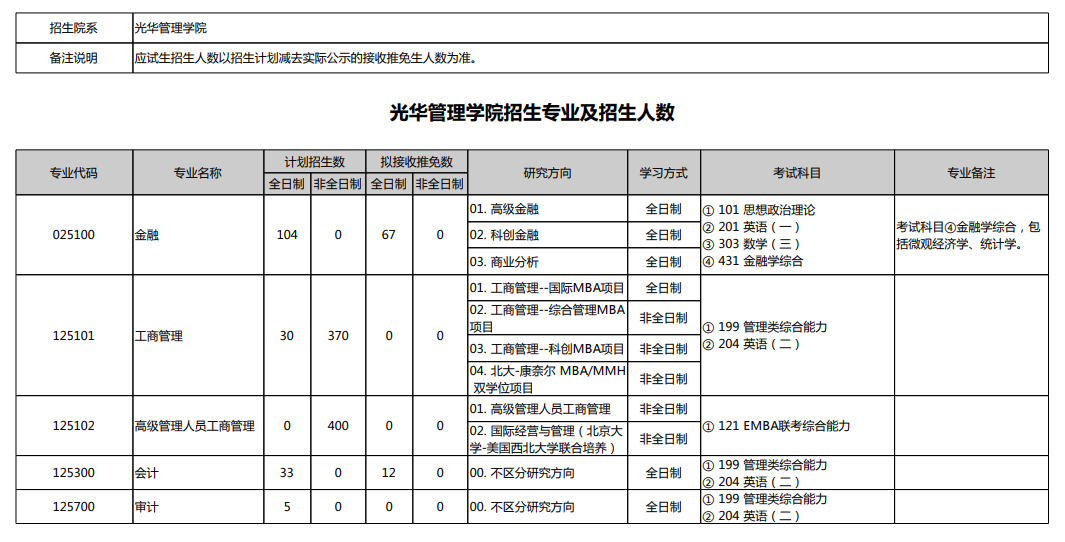 2025年北京大学光华管理学院硕士研究生招生专业目录