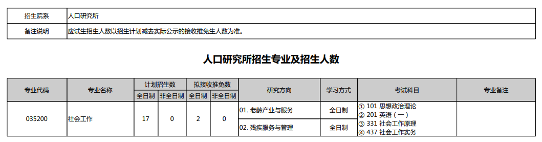 2025年北京大学人口研究所硕士研究生招生专业目录