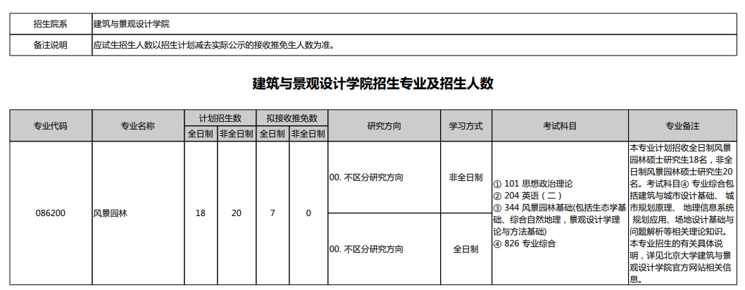 2025年北京大学建筑与景观设计学院硕士研究生招生专业目录