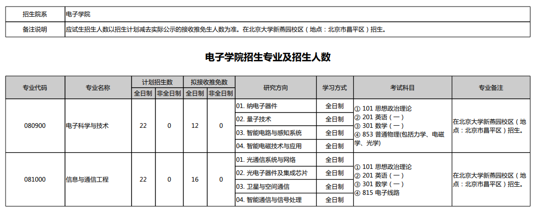 2025年北京大学电子学院硕士研究生招生专业目录