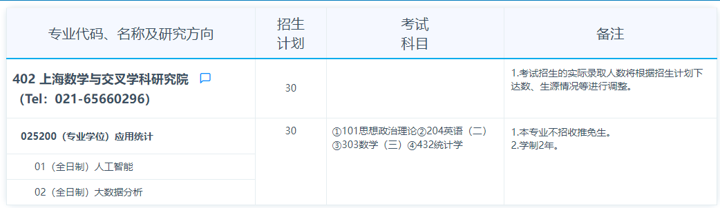 2025年复旦大学上海数学与交叉学科研究院硕士研究生招生专业