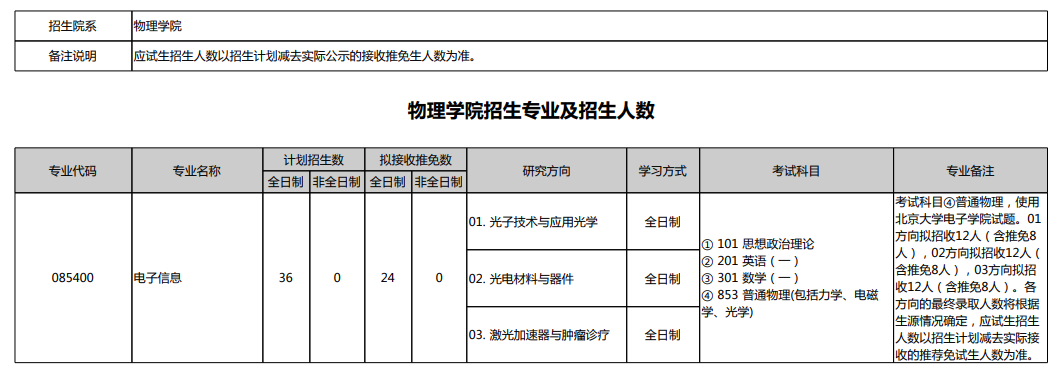 2025年北京大学数学科学学院硕士研究生招生专业目录