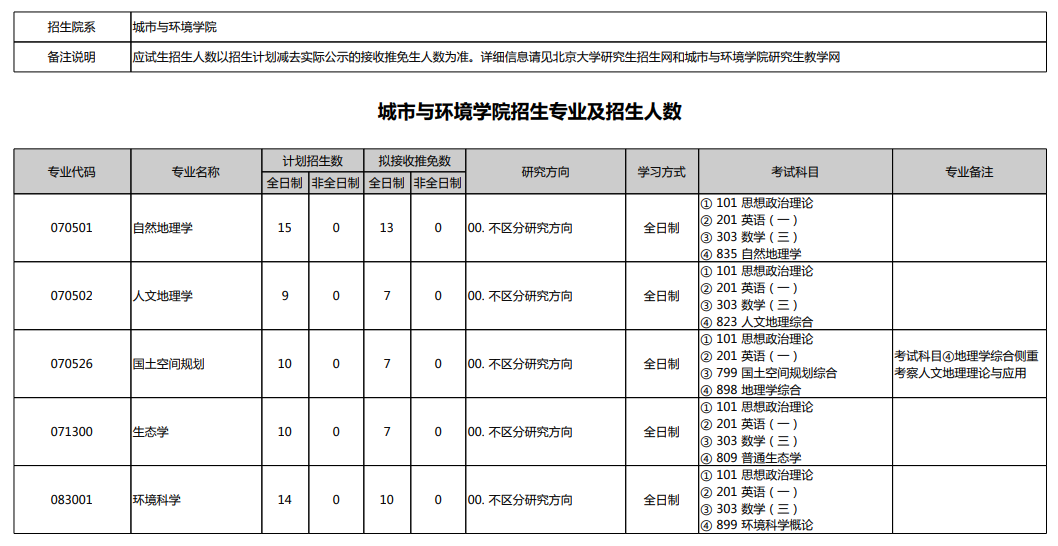 2025年北京大学城市与环境学院硕士研究生招生专业目录