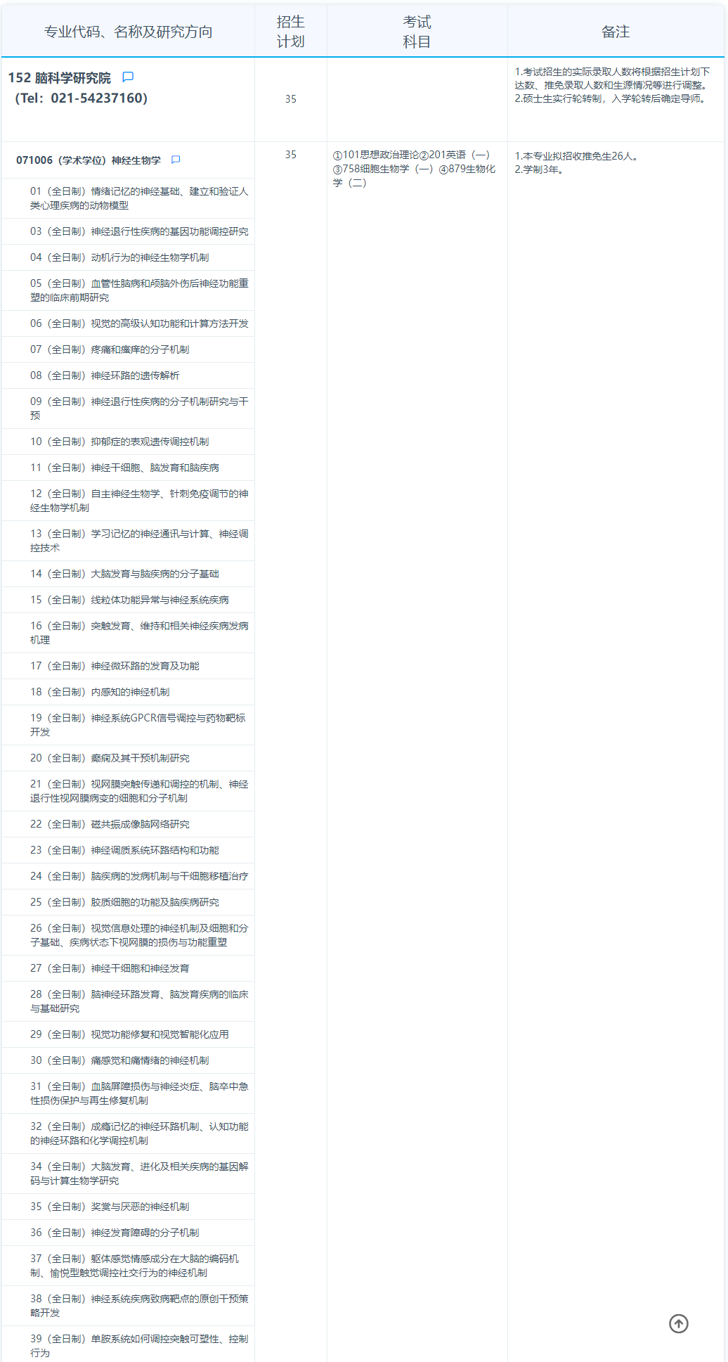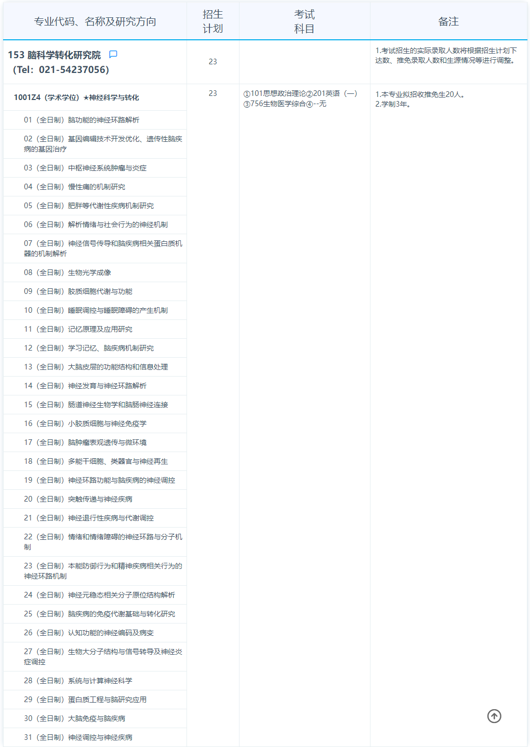 2025年复旦大学脑科学转化研究院硕士研究生招生专业目录