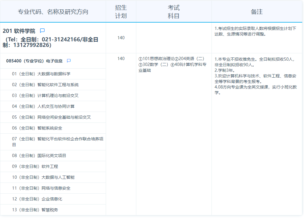 2025年复旦大学软件学院硕士研究生招生专业目录