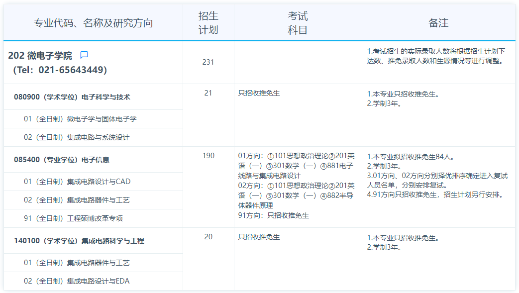 2025年复旦大学微电子学院硕士研究生招生专业目录
