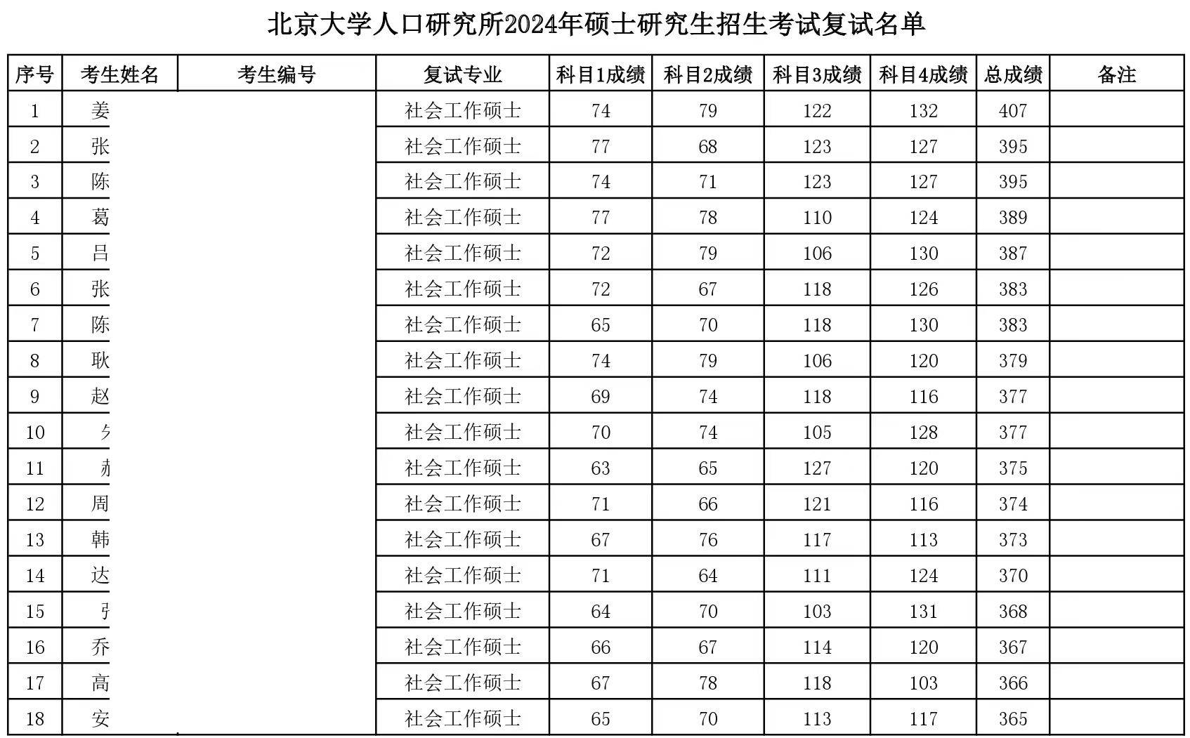 2024年北京大学人口研究所硕士复试细则,内容过多摘取重点。复试分数线社会工作2024年:55、55、90、90、335...