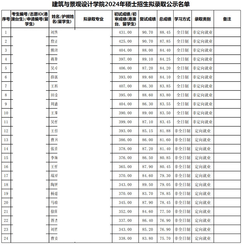 2024年北京大学建筑与景观设计学院硕士研究生拟录取名单